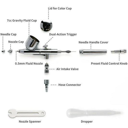 MEEDEN 3 Pcs Airbrush Set, , 0.5mm Needles Pre-Equipped