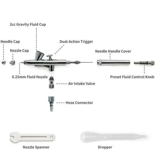 MEEDEN Airbrush Set, 0.25mm Needles Pre-Equipped