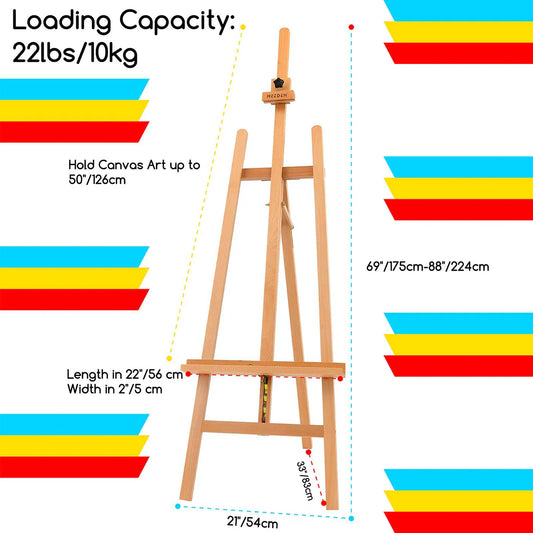 MEEDEN Large Basic Studio A-Frame Solid Beech Wood Floor Painting Easel, Hold Canvas Up to 50''-W01E