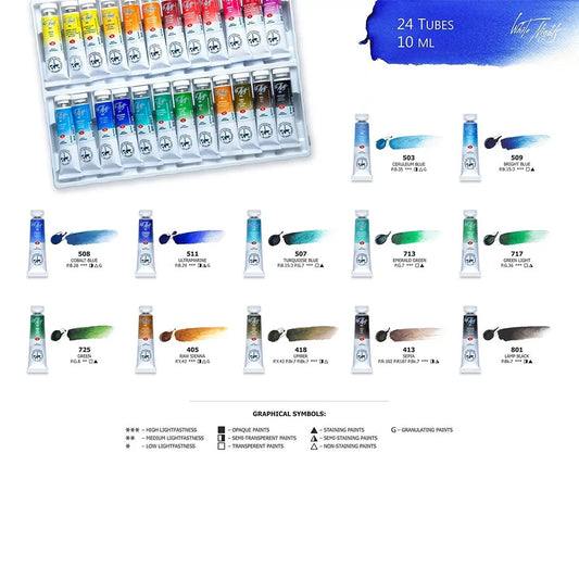 White Nights Watercolour Paints Set Tubes 10ml