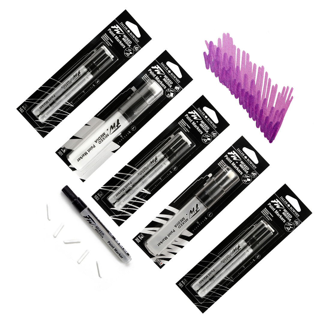 Daler-Rowney FW Mixed Media Paint Markers are refillable markers which allow you to apply inks and other liquid media with precision across a variety of surfaces. A selection of paint marker sets and nibs are available, suitable for technical drawing, illustration and street art.