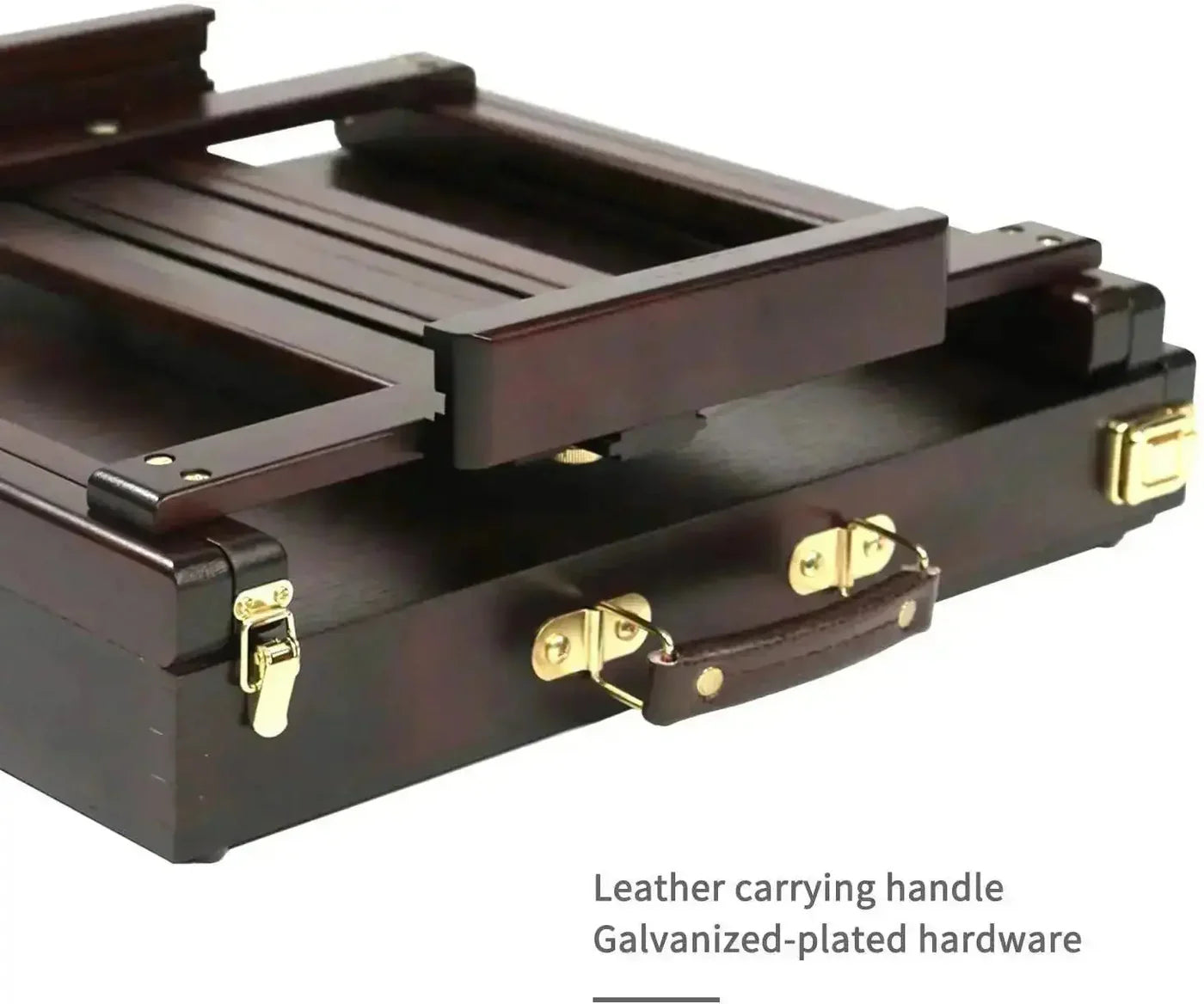 - Premium Craftsmanship: Handmade from sanded solid beechwood, the easel features brass-plated hardware and a leather carrying handle, combining durability with style.